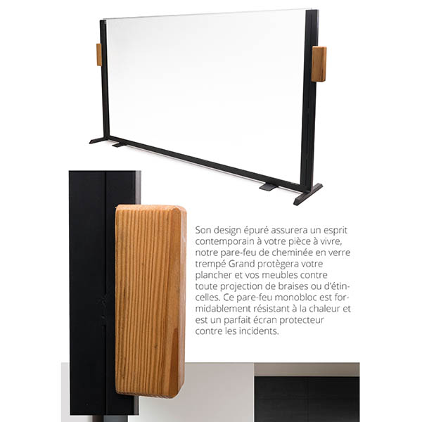 Son design épuré assurera un esprit contemporain á votre pièce à vivre, notre par-feude cheminée en verre trempé protège votre plancher et vos meubles contre toute projection de braises ou d’étincelles.