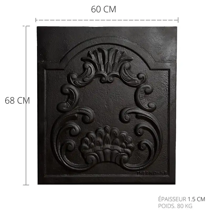Une plaque de cheminée protège la paroi arrière du foyer contre les fissures et l’effritement. De plus, le dos de feu en fonte absorbe la chaleur qui serait autrement perdue et la libère dans la pièce. Un dos de cheminée en fonte fonctionne ainsi comme un radiateur et peut augmenter le rendement de la cheminée de 50%. Si vous n’êtes pas sûr de la taille de la plaque de cheminée ancienne qui convient à votre cheminée à foyer ouvert, veuillez lire ici: Quelle taille de plaque de cheminée convient à ma cheminée à foyer ouvert?